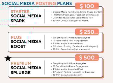 Explore our budget-friendly monthly social media marketing packages, starting at just $100 per month. Our content is designed with eye-catching visuals and a clean, professional aesthetic to help your brand stand out and stay consistent in today’s digital space.